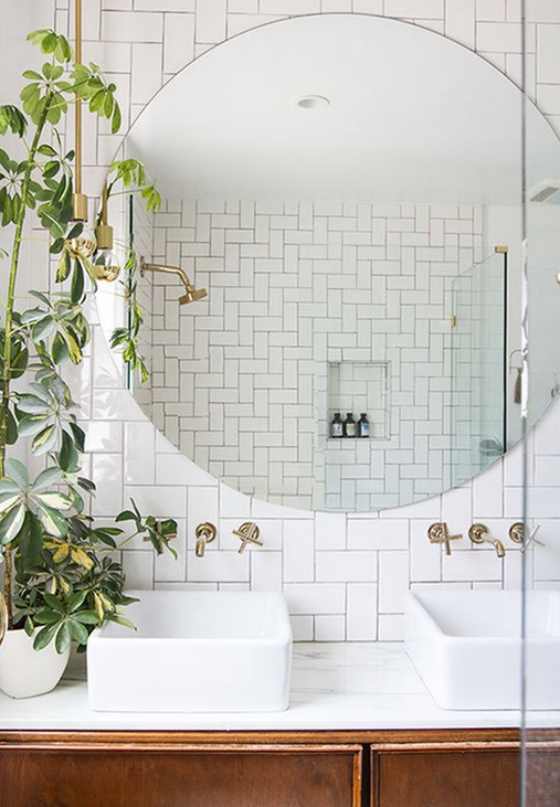 Aparte de los beneficios estéticos, que los damos por supuestos, las principales ventajas de colocar grandes espejos redondos en el baño son claras: ayudará a que la estancia gane metros, ya que los espejos proyectan la luz y engrandecen visualmente los espacios.